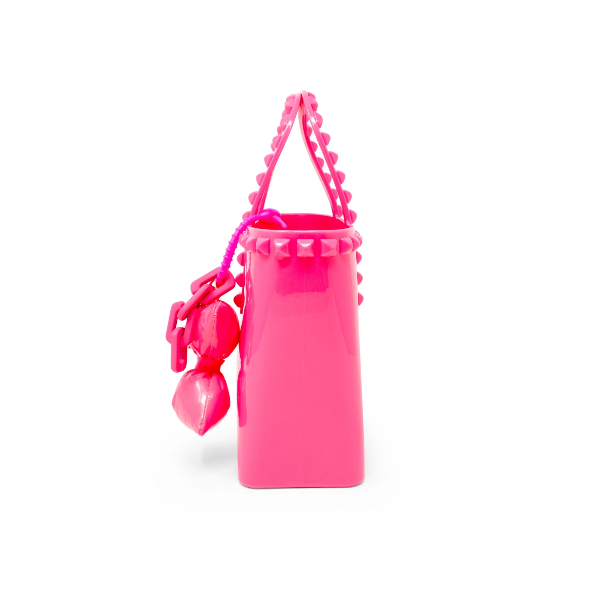 Hot Pink Tiny Jelly Stud Tote w/ Bow Charm